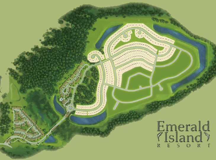Emerald Island is a "land island" amidst a sea of lush vegetation.